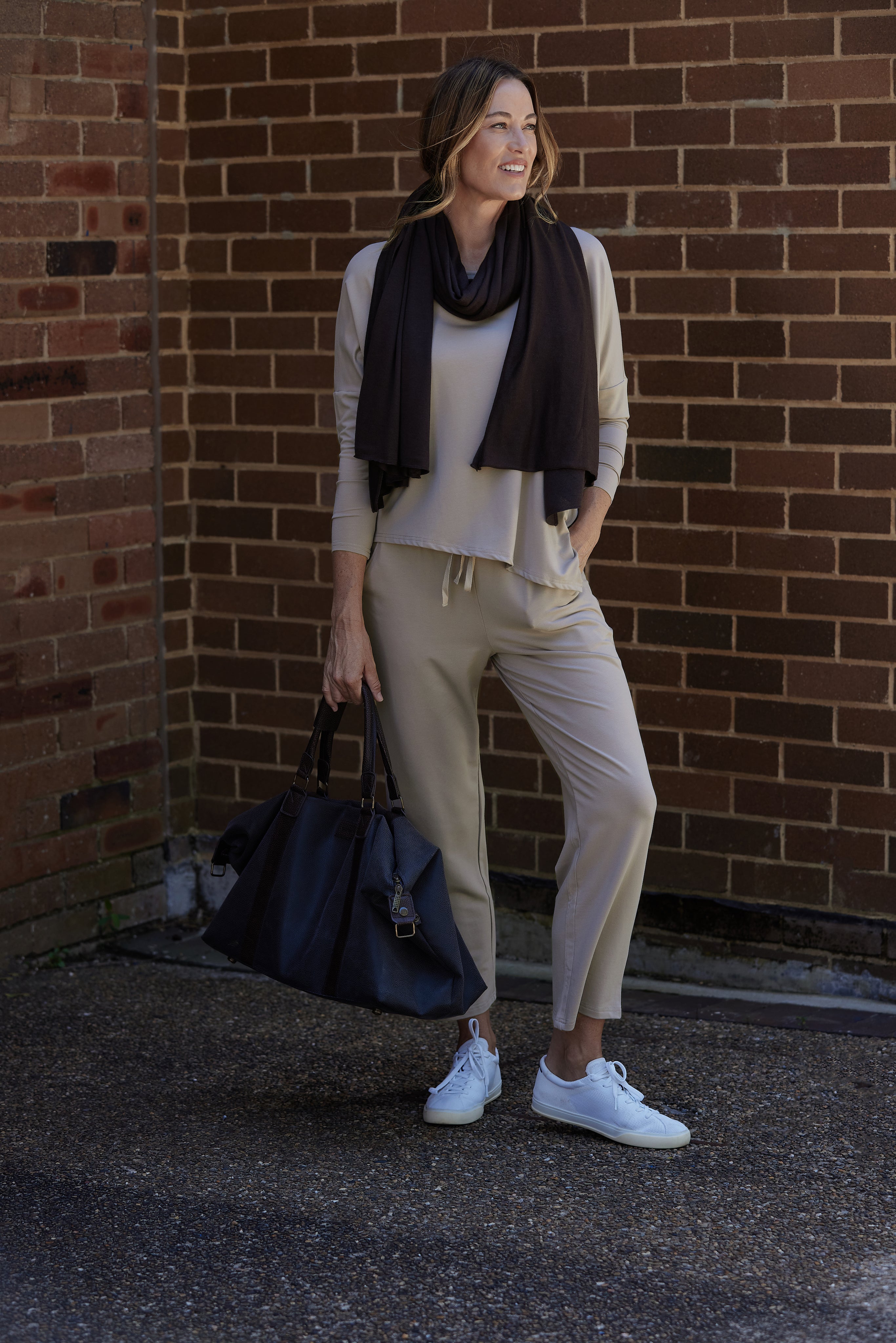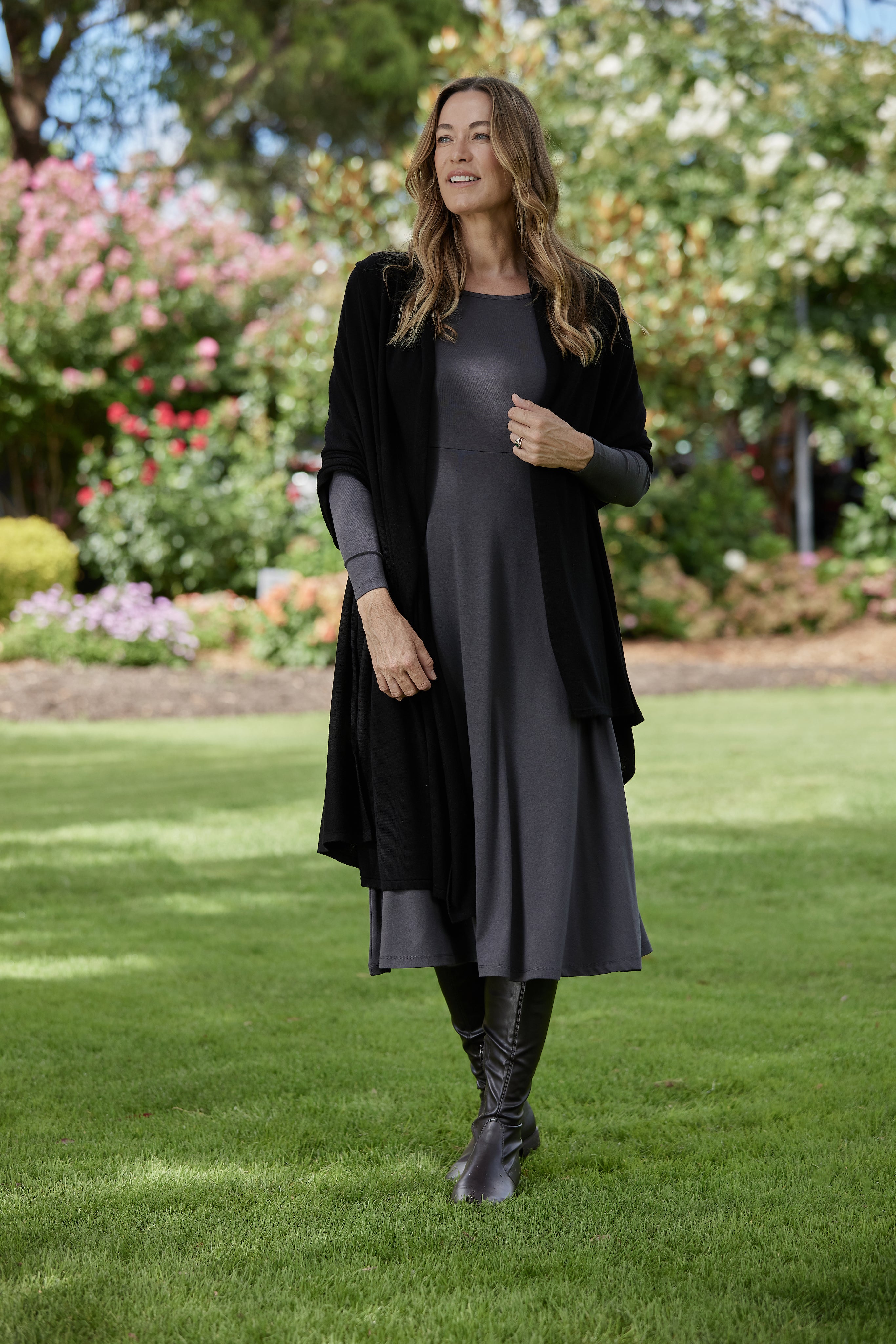 Ready to discover your new favorite layer? Our bamboo travel wrap is available now in our showroom and online, ready to become the most versatile piece in your wardrobe – whether you're crossing time zones or just crossing town.