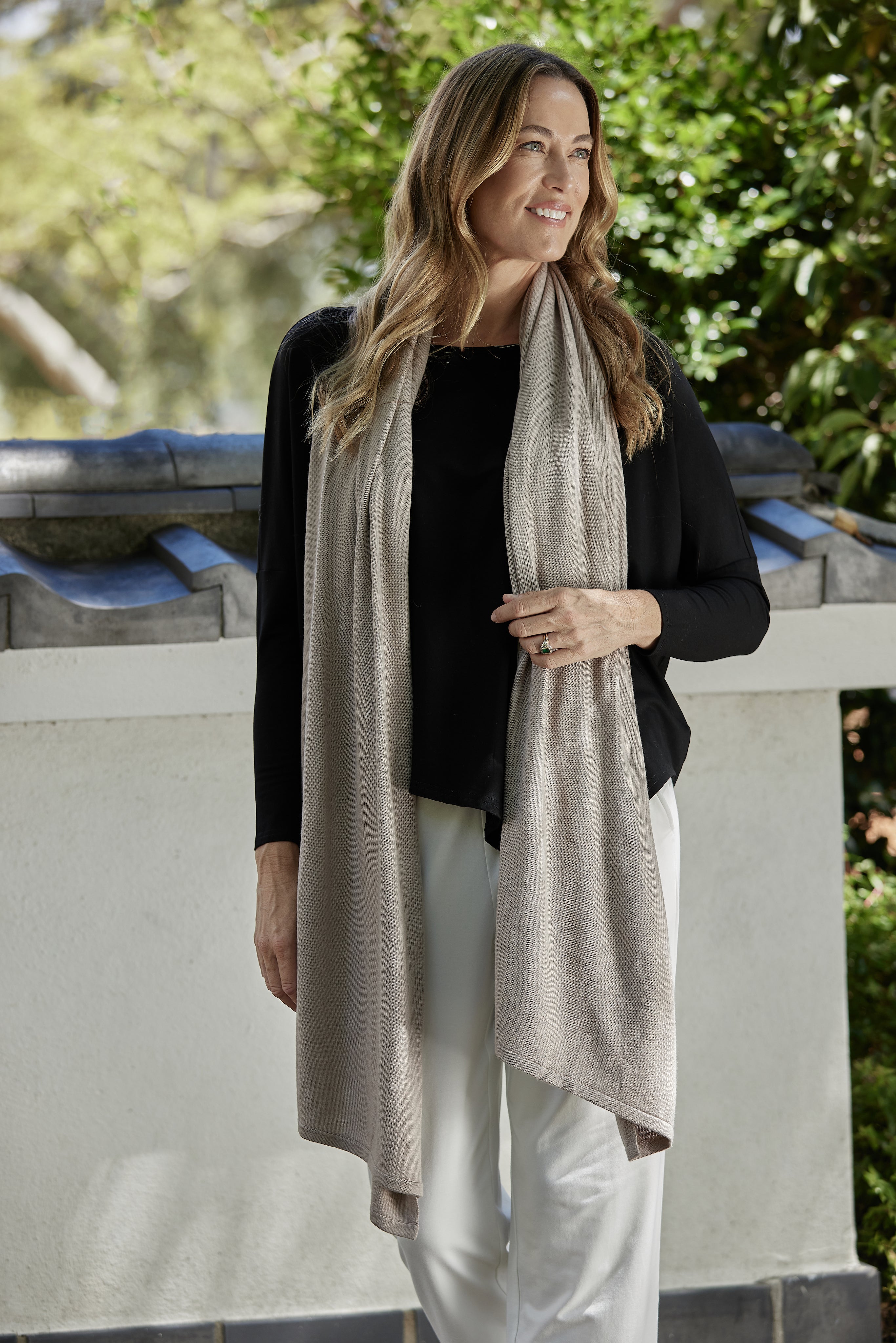 Ever notice how the most essential items in your wardrobe are those versatile pieces that seamlessly transition from one situation to another? Our new Bamboo & Recycled Cashmere and Wool Travel Wraps have quickly become that go-to item for many of our customers – and for good reason.