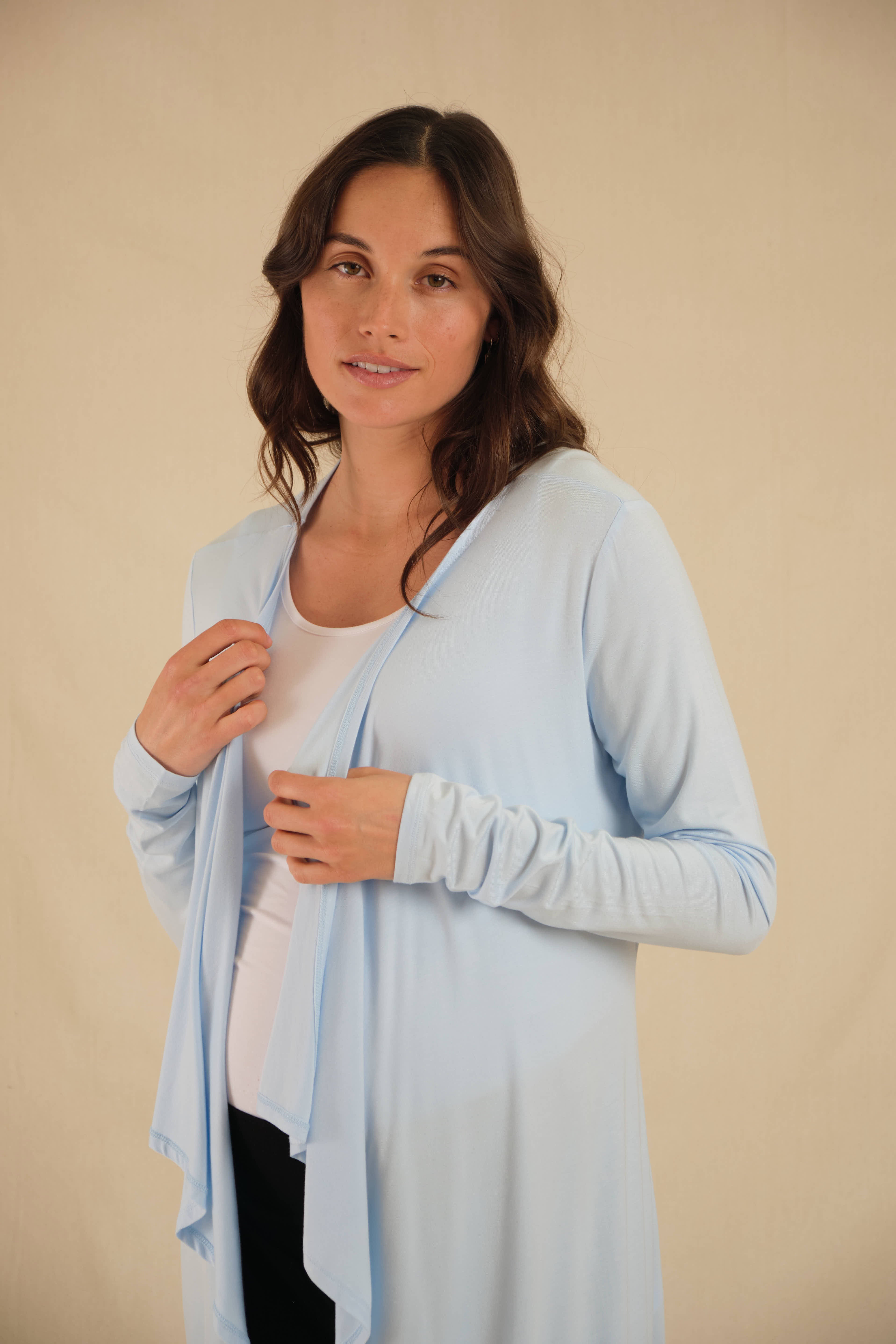 The Maternity Waterfall Cardigan is a soft, open front piece that elegantly drapes around your curves. Perfect for year-round wear, it's one of our most versatile BB essentials. Easy to style and comfortable to wear, this cardigan features extra long sleeves and a luxuriously soft, lightweight fabric, making it a feminine layer that complements many outfits. With over 10 colours available, you'll find the perfect shade to suit your style, whether you prefer lighter hues, darker tones or classic neutrals.