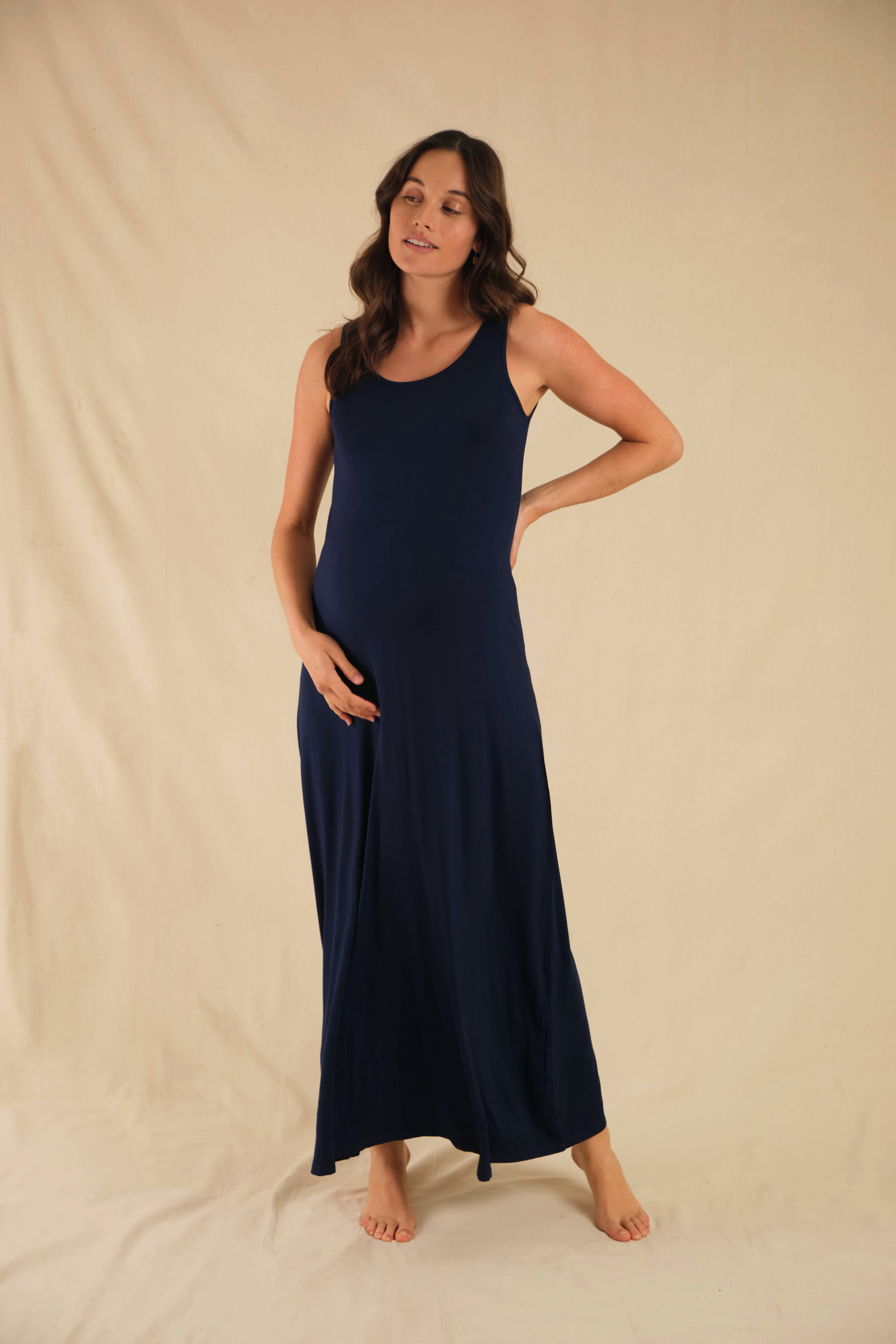 The Bamboo Maternity Maxi Dress is an effortless throw-on-and-go staple. Featuring a semi fitted bust and a slight A-line drape from the waist down, this versatile maxi dress flatters all body shapes and stages of pregnancy. With six shades to choose from, you can opt for something bold and bright or keep it muted and simple. Available in both petite and regular lengths, it caters to both taller and shorter women. Perfect for the warmer months, this breathable, soft and lightweight dress keeps you refreshingly cool while looking beautiful. Dress it up with heels and statement jewellery or down with slides - either way, it looks fantastic!