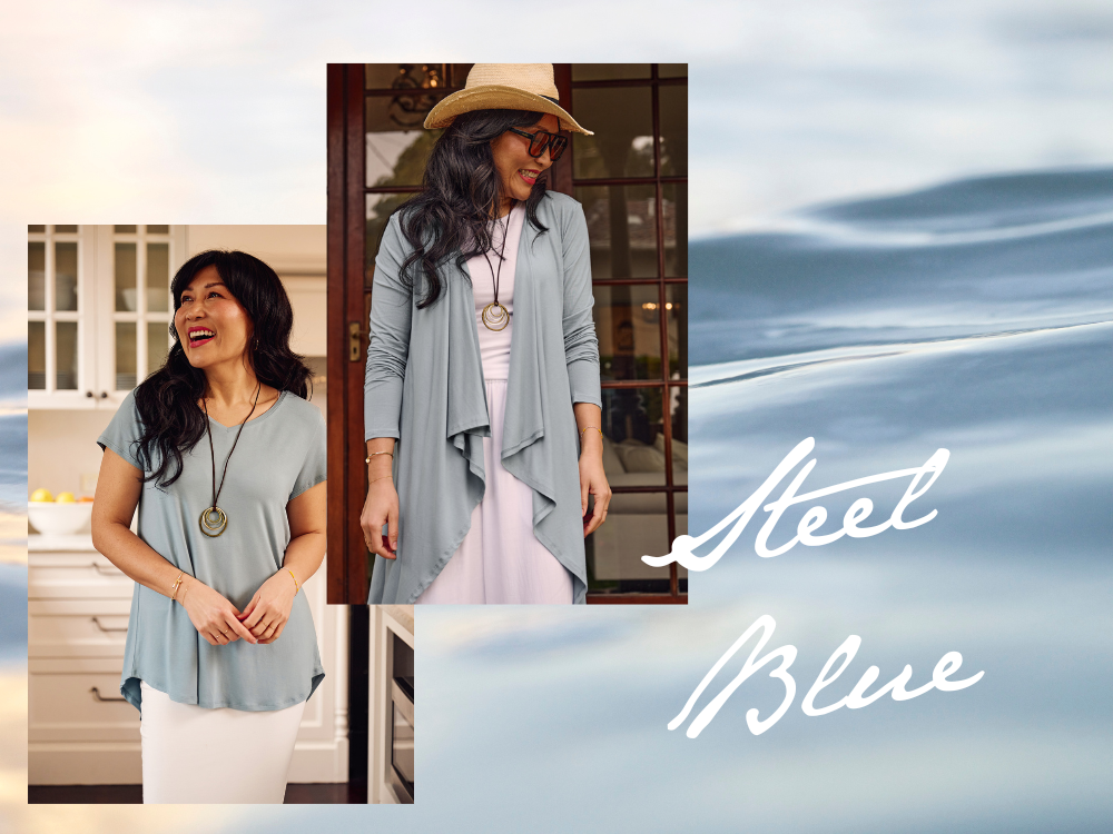 A refined, modern hue that feels calm, cool, and quietly confident. Sitting between soft grey and tranquil blue, it carries an easy sophistication. Fresh without being loud, elegant without trying too hard. It's the kind of colour that instantly soothes the mood. Perfect for those who value simplicity with a touch of polish, Steel Blue brings a sense of ease and balance to any wardrobe.