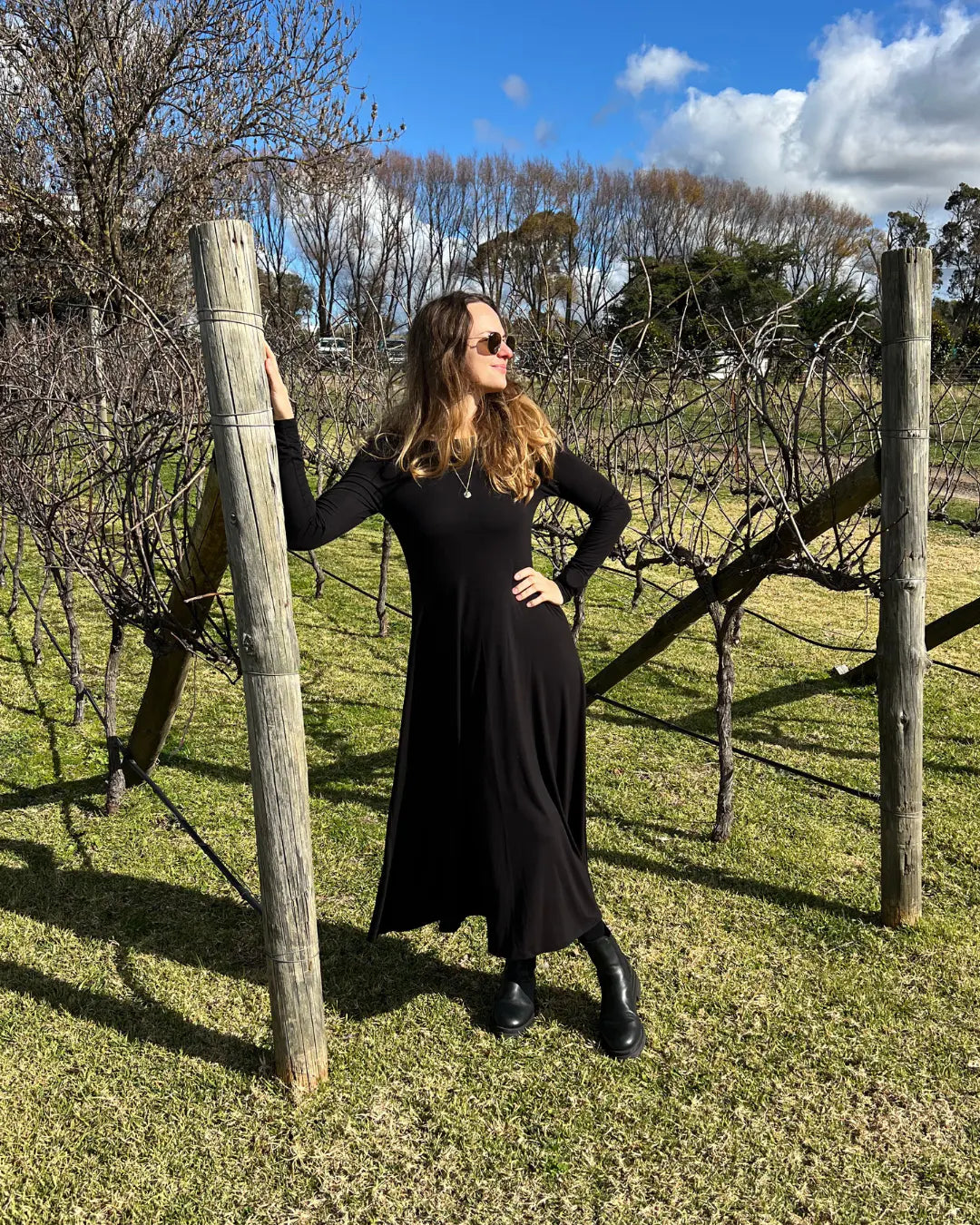 Even on a short getaway, there might be an opportunity to dress up and go out. Think of a nice café with local produce, a winery tour to try local wines, or fine dining with a delicious course menu — you'll need something in your capsule for these occasions. While we have many dresses to choose from, our number one choice is the Olivia Dress in black. It's an elegant, sophisticated dress that you can dress up or down depending on the occasion. Featuring a feminine A-line waist-contouring design, long sleeves, and a midi length, it's the perfect choice to add something extra to your suitcase. It's always good to be prepared for a special outing!