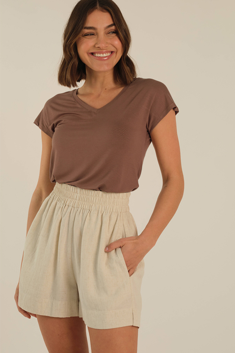 Mousse mixes seamlessly with the sandy shade of Sahara — one of our linen favourites. For an easy, breezy look, pair Mousse tops with Sahara Shorts or Pants, or flip it and style Mousse bottoms like the Lana Skirt with the Sahara Shirt. It’s a relaxed summer combo that’s perfect for warm days and effortless layering.