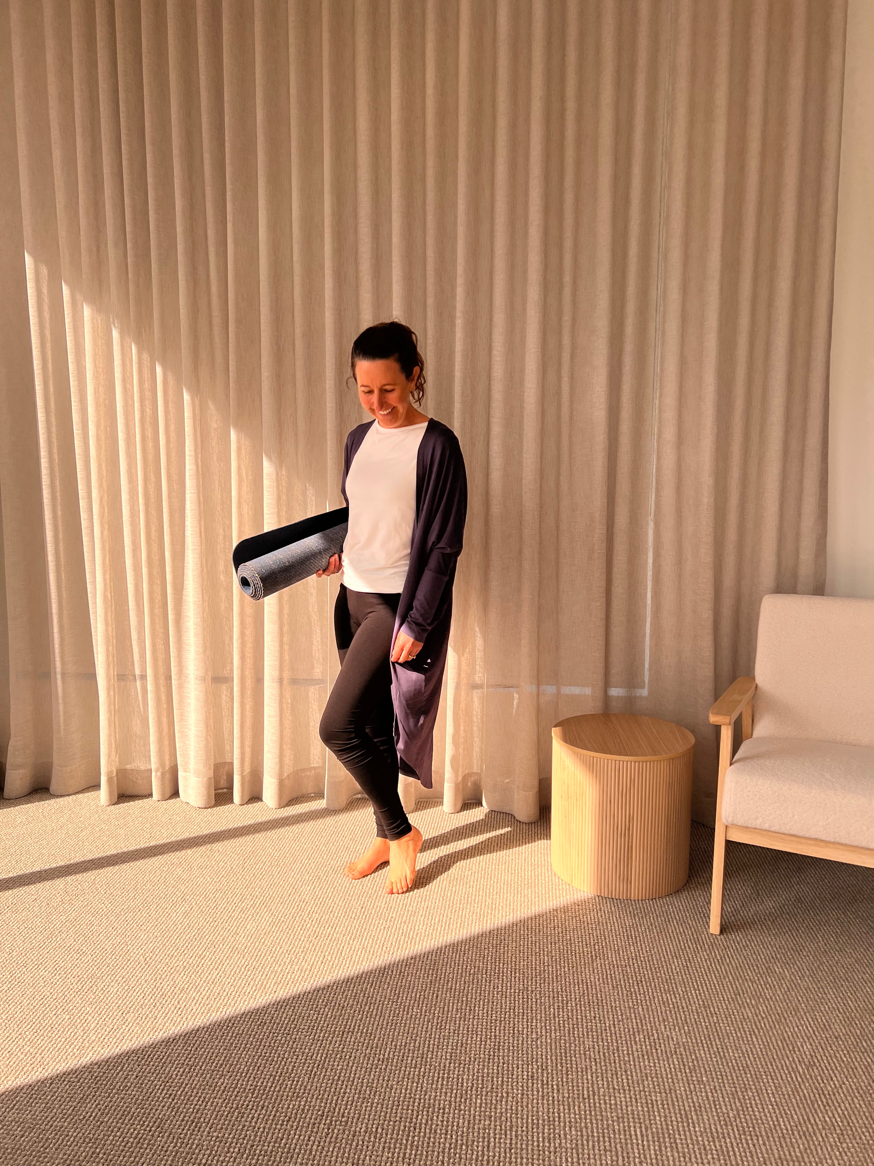 After a busy shoot day, a yoga class helps to stretch out the body and recalibrate. I wore the Ada with Soft Leggings in black. I added a Cocoon Cardi for extra warmth and coverage for before and after class.