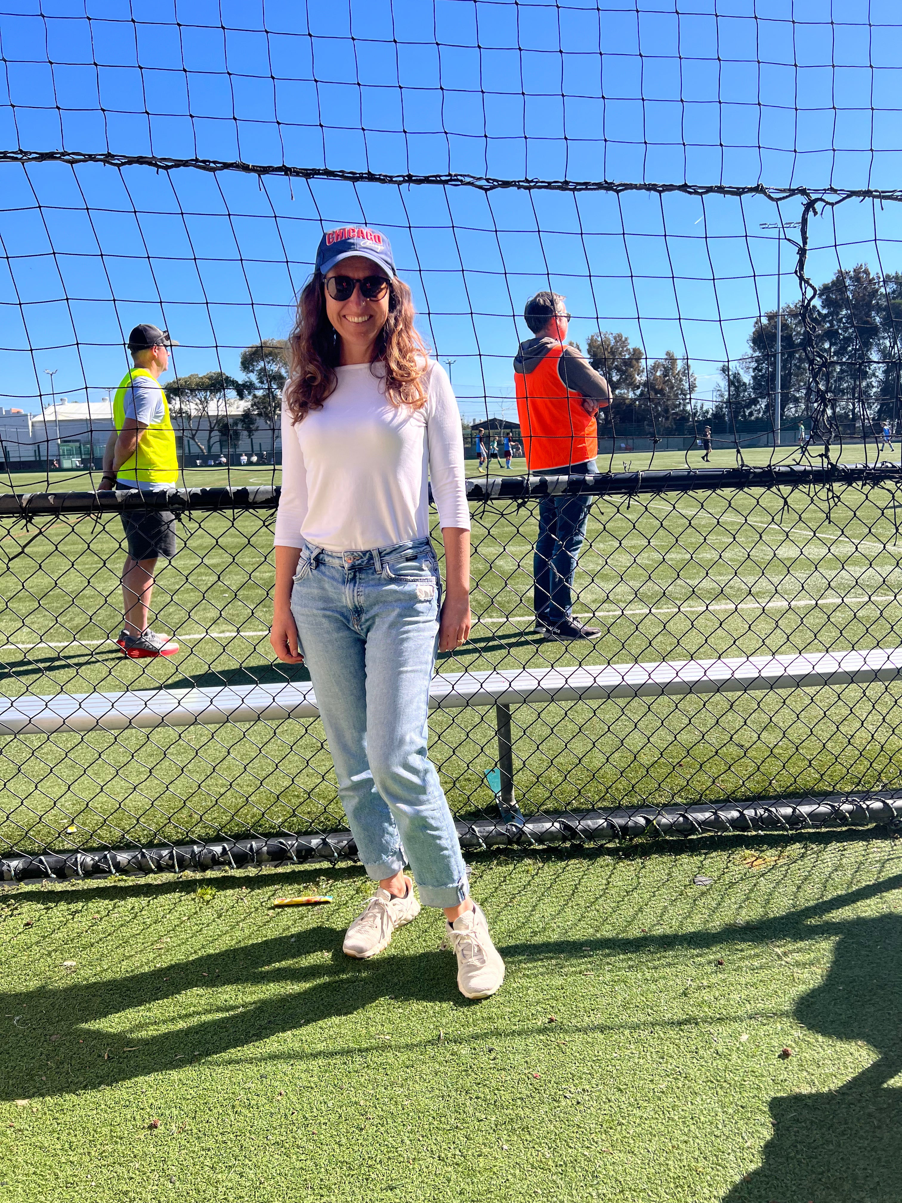 You never know what the weather will be like at soccer. I often leave the house with a puffer jacket, an umbrella, a hat and sunglasses. Layering clothing is essential! The Ada provides excellent sun protection if the sun unexpectedly comes out, and warmth as a layering piece on colder days. It also looks pretty good under the grounds duty vest!