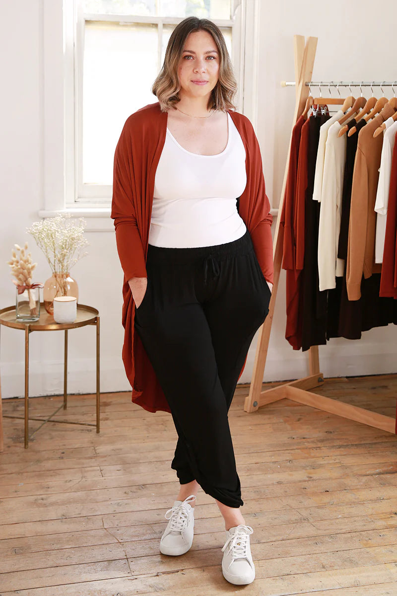 High-waisted pants with soft or elasticated waistbands—like the Sahara Pants—are another excellent choice. They offer comfort, which naturally boosts confidence. Remember, comfort is key to feeling your best at any age!