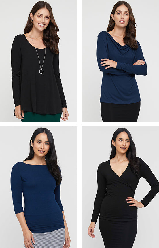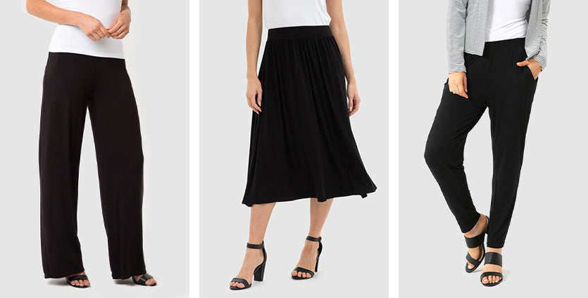 With the help of professional stylist and body shape expert, Angela Barbagallo, we dress one of our most loyal Bamboo Body customers, Kim, so you can get a gauge of how our new AW21 styles look on a petite figures. Kim is a pettie pear body shape. She is 156cm (5"1") and usually wears a size small/10 in tops and L/14 in pants and skirts.