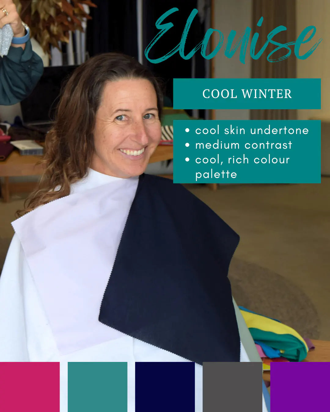Let’s take a closer look at two Bamboo Body team members, Elouise and Luana. After a colour analysis by Sylvia from Colour Me Coach, both were identified as Winters with cool skin undertones. However, they look quite different. How can they both belong to the Winter season and wear the Winter colour palette?