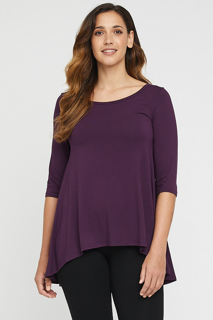 Hi Lo Hem Top: Style this tee with a pair of our Soft Bamboo Leggings and boots for a bold, edgy look. Bring back some softness with the Luxe Wide Leg Pant or Ruched Skirt.