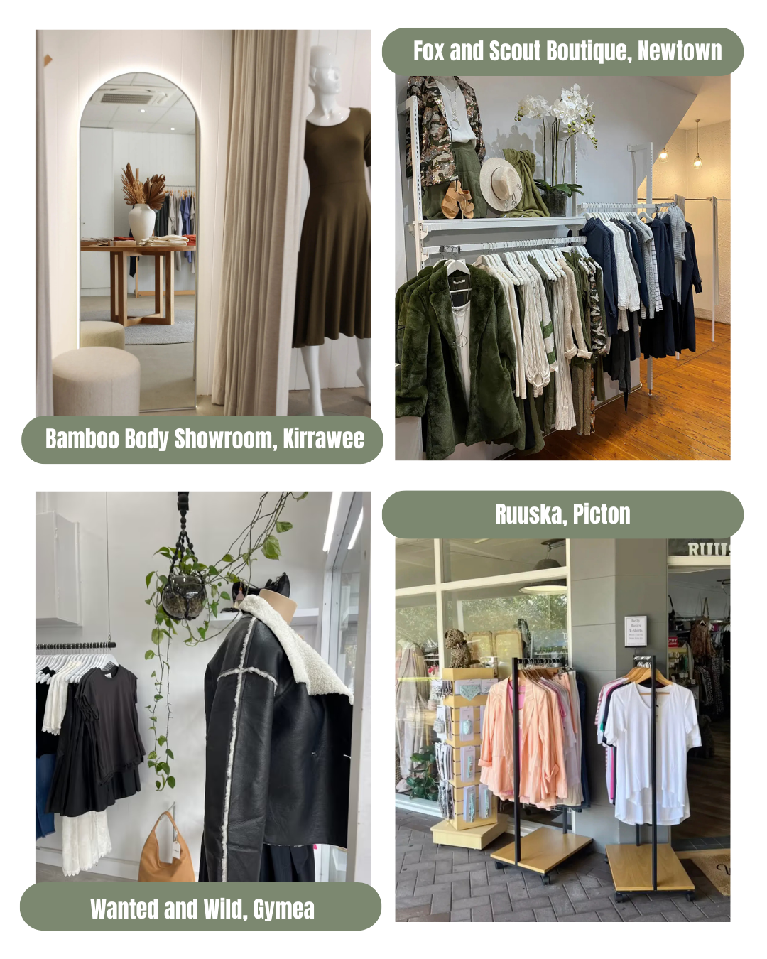 Continue to Gymea, where Wanted and Wild showcases a selection of our bestsellers, perfect for enhancing your sustainable wardrobe. Conclude your journey in Picton at Ruuska, where the small-town charm awaits you, offering another delightful spot to discover our garments.
