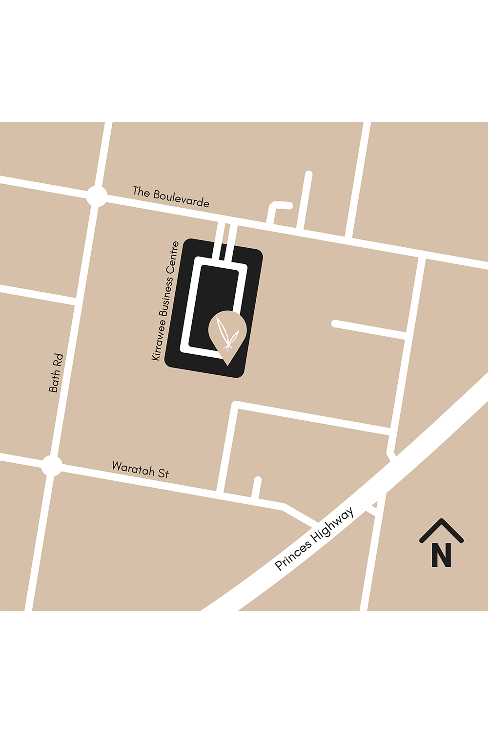 Located in Southern Sydney, in the heart of the Sutherland Shire, you will find us in the Kirrawee Business Centre, just off the Princes Highway. We are less than a 10 minute drive from Westfield Miranda and a 20 minute drive from Hurstville.